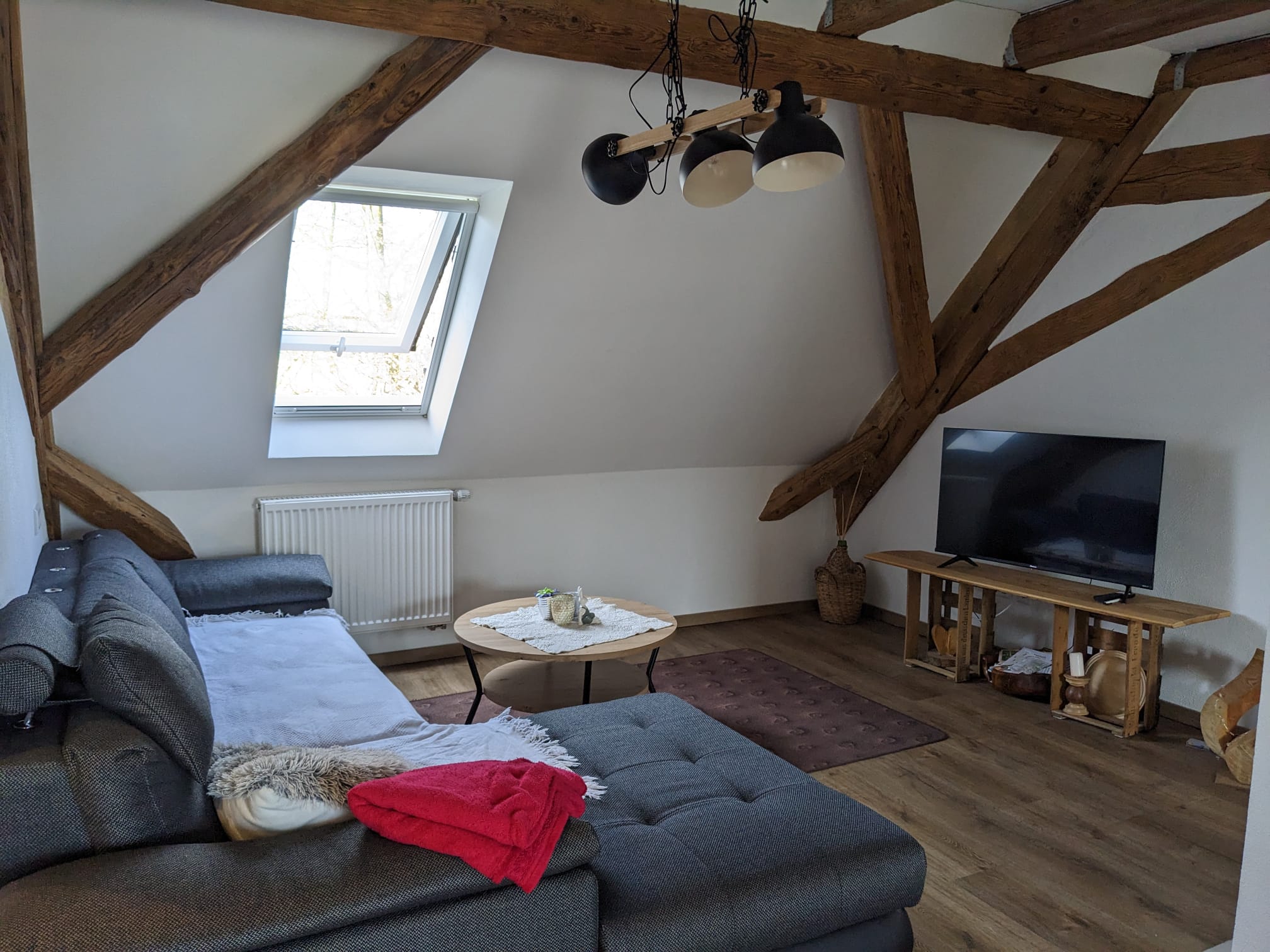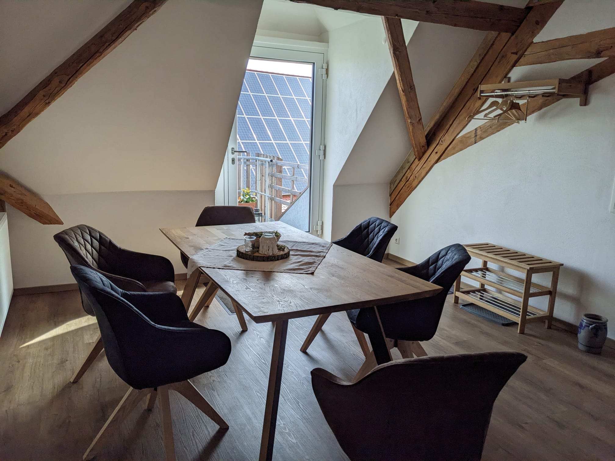- Küchenzeile mit 4 Plattenherd, Backofen, Spülmaschine, Kühlschrank mit Gefrierfach, Kaffeemaschine, Wasserkocher, Toaster und ausreichend Geschirr